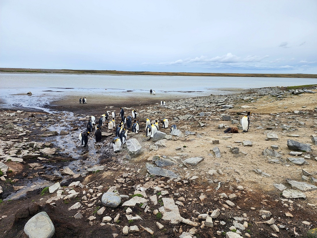 Manchots Royaux, la deuxième plus grande espèce après le Manchot Empereur. L'adulte mesure entre 85 et 95 cm et pèse entre 12 et 14 kg
