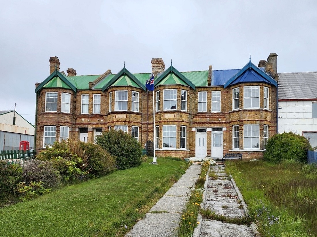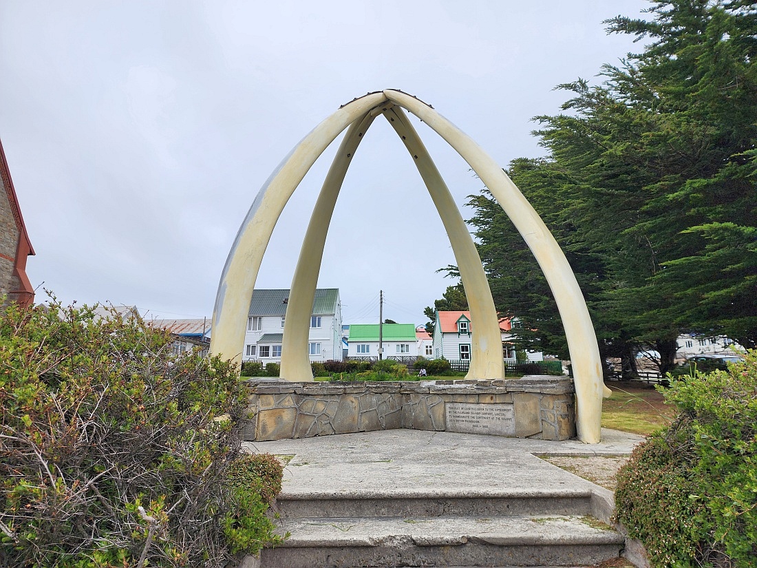 Arche en os de baleine, érigée en 1933 à partir des mâchoires de deux baleines bleues pour commémorer le centenaire de la domination britannique sur les îles Malouines