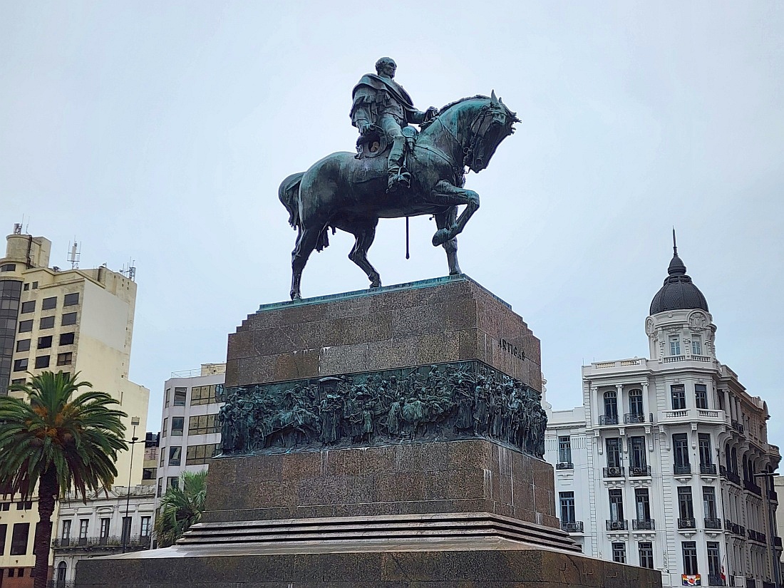Au centre de la place, monument en l'honneur du général José Gervasio Artigas, héros de l'indépendance, inauguré en 1923, composé d'une statue équestre en bronze de 17 mètres de haut sur une base en granit qui abrite le mausolé d'Artigas