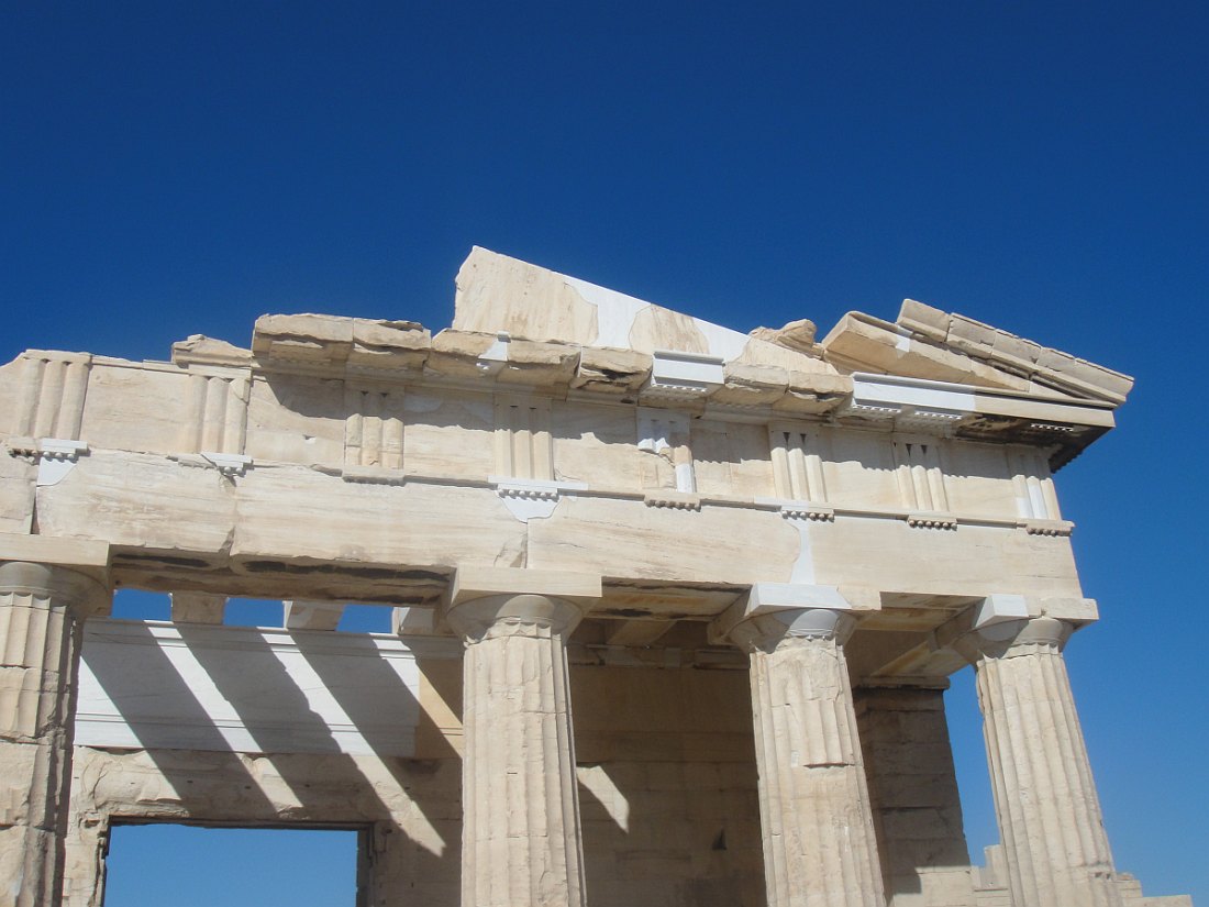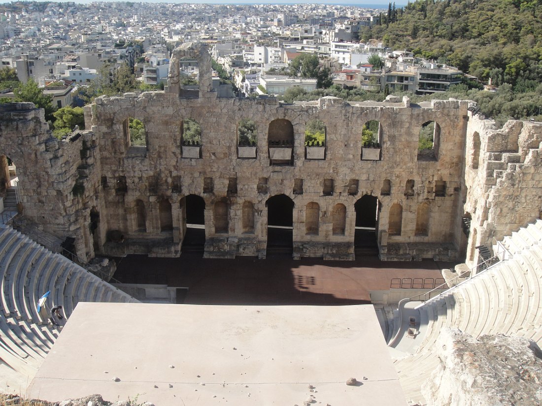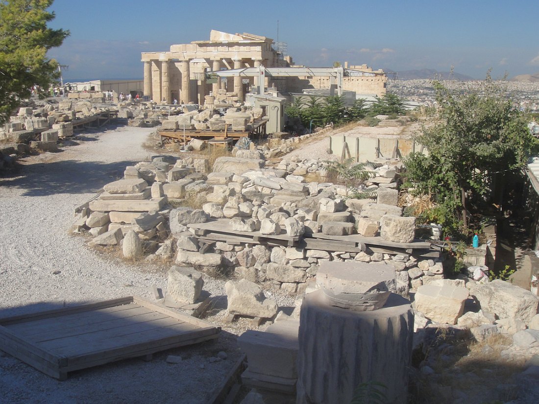 L'ACROPOLE - Un plateau rocheux calcaire s'élevant au centre de la ville d'Athènes à laquelle elle a longtemps servi de citadelle avant de devenir, un grand sanctuaire principalement consacré au culte d'Athéna, comprenant plusieurs temples dont le Parthénon, l'Érechthéion et le temple d'Athéna Nikè. Les autres monuments remarquables sont les Propylées, le théâtre de Dionysos, l'odéon d'Hérode Atticus.