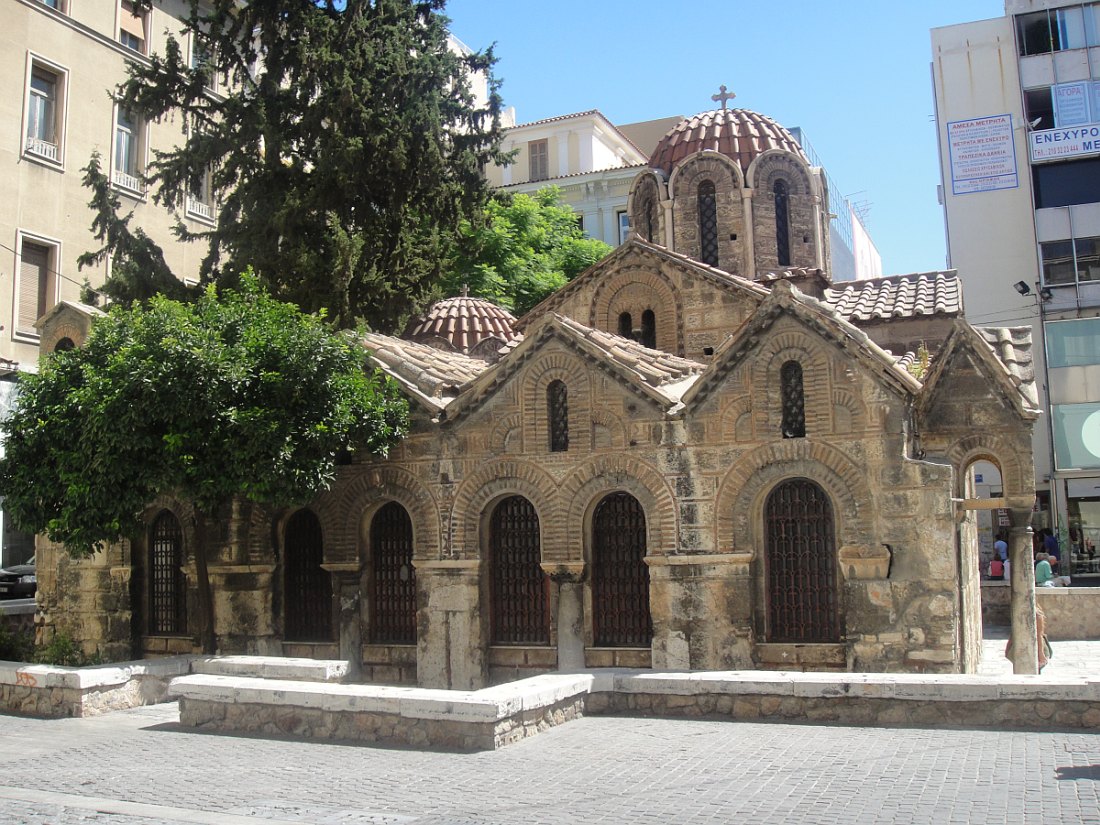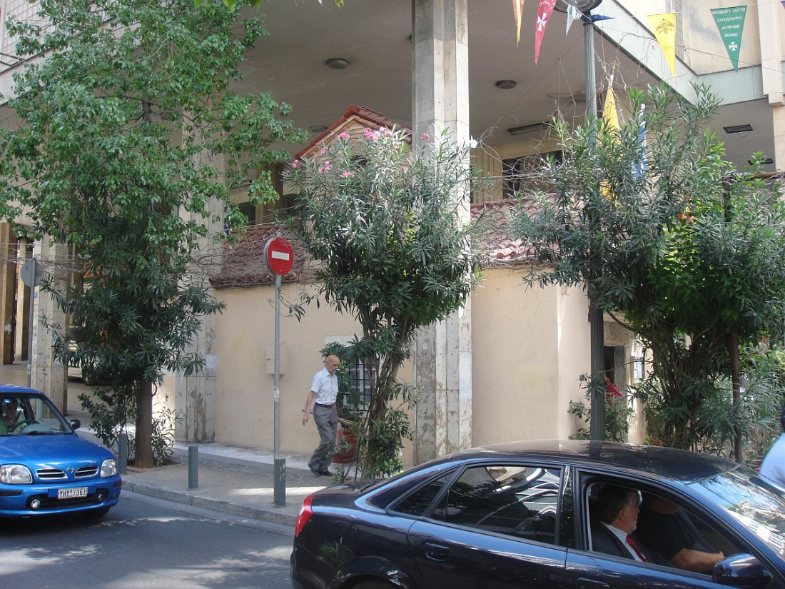 Eglise d'Agia Dynami, érigée au XVIème siècle, réhabilitée et surplombée par un batiment construit au-dessus, en Grèce on ne détruit pas les églises.