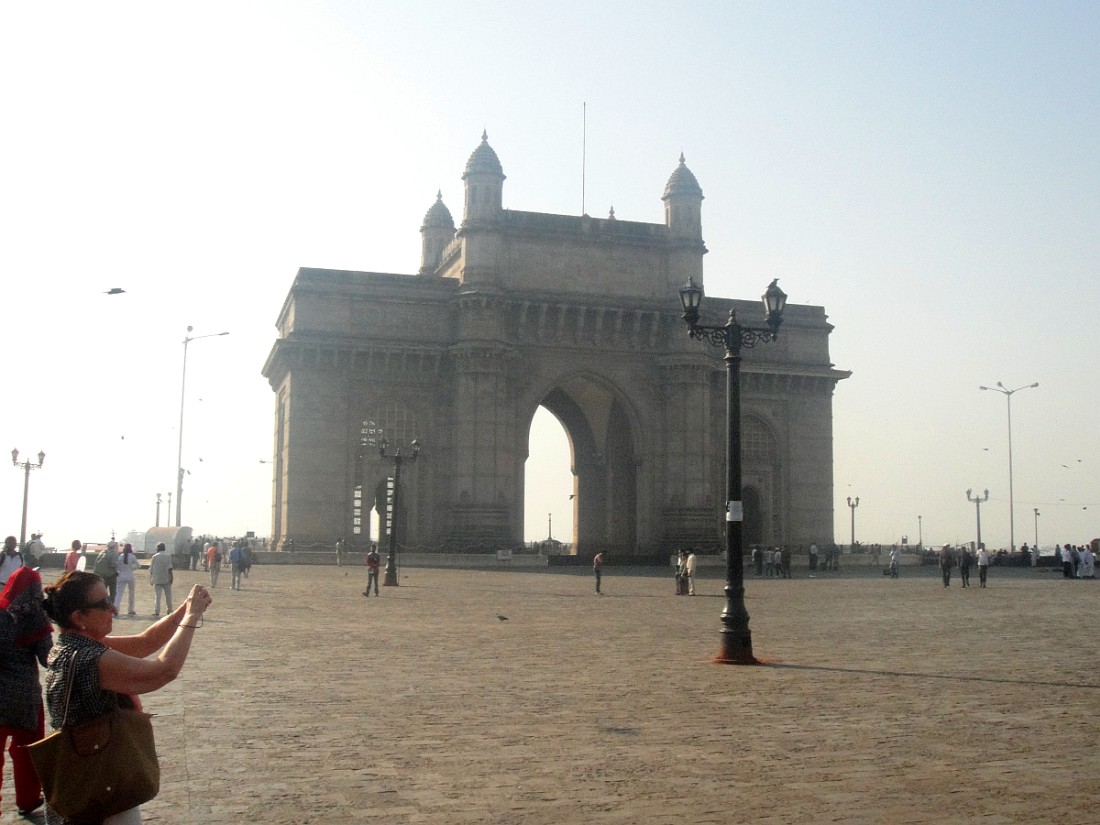 La porte de l'Inde, une arche monumentale sur le front de mer, construite entre 1915 et 1924, en basalte jaune dans le style Gujarati du XVIème siècle, pour commémorer la visite du roi George V et de la reine Marie en 1911.