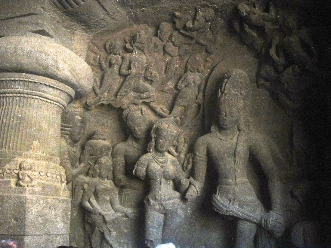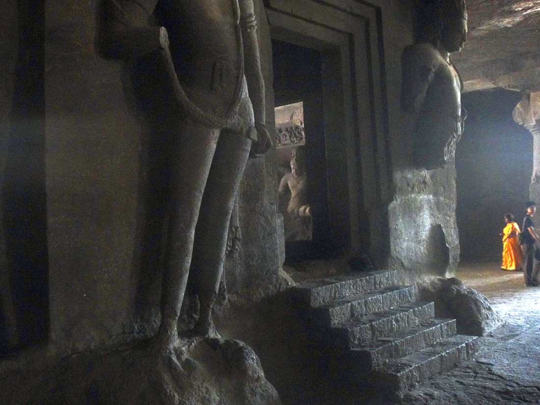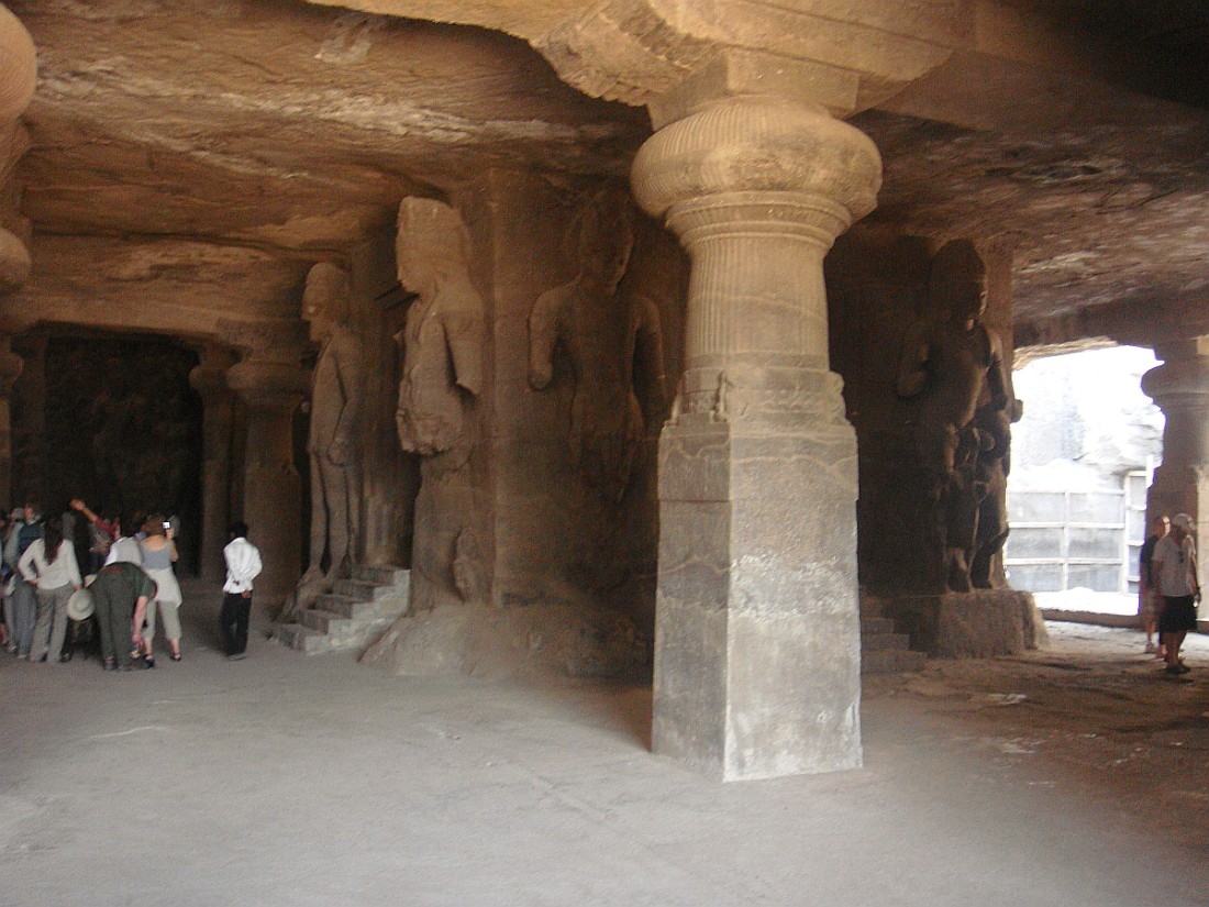 LES GROTTES D'ELEPHANTA - Un groupe de temples excavés dans une falaise, conservant un ensemble monumental de sculptures rupestres du VIème au VIIIème siècles, situé sur la mer d'Oman, à dix kilomètres de Bombay, accés par bateau rafistalés, petit train et chaise à porteur si fatigué