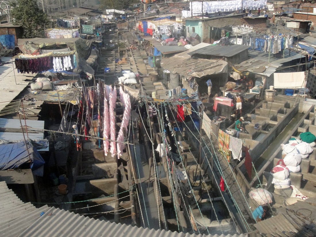 DHOBI GHAT - Laverie géante en plein air. Les laveurs de père en fils travaillent en plein air pour nettoyer les vêtements et les draps des hôtels et des hôpitaux de Mumbai