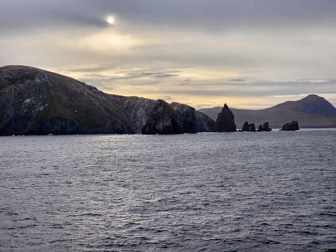 Cap Horn, situé à l’extrémité sud de l'île Horn, un endroit légendaire, promontoire vertical de 425 mètres de haut. Il marque la rencontre tumultueuse du Pacifique avec l’Atlantique