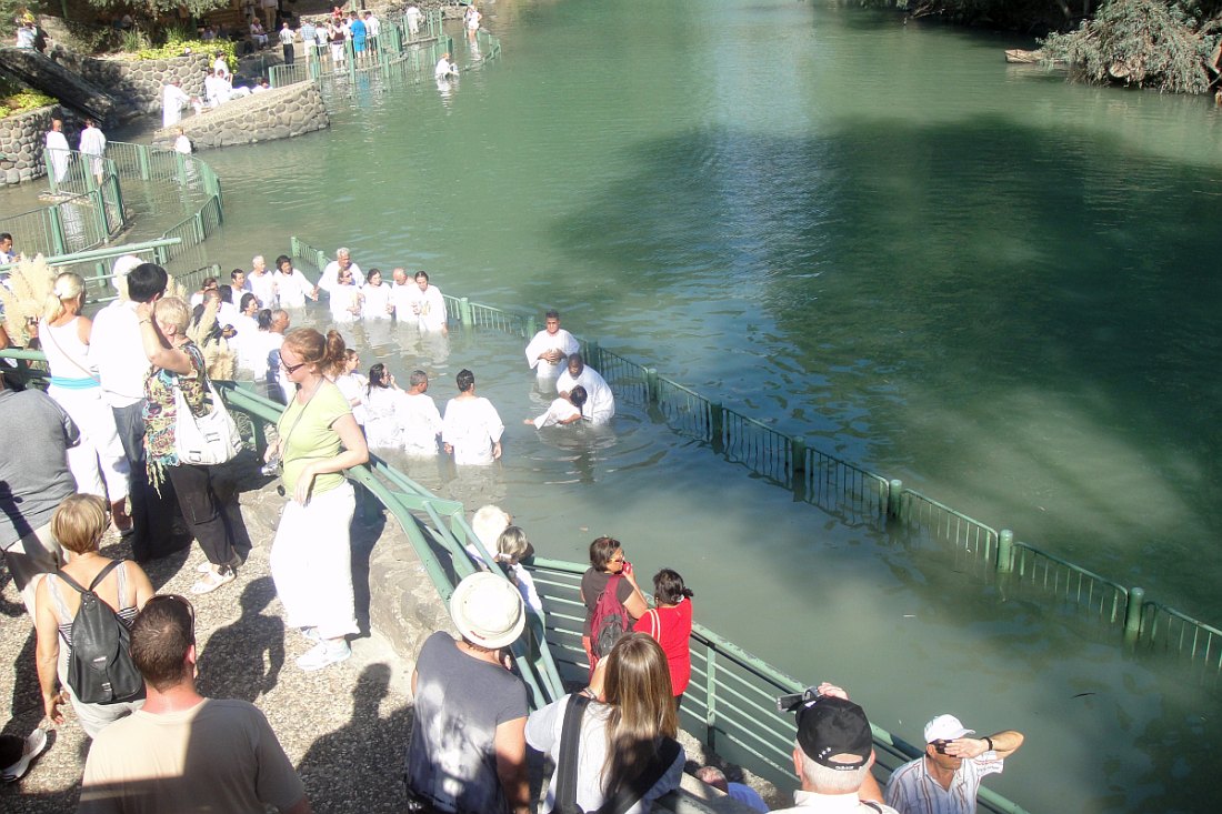 Yardenit, lieu officiel de célébration de baptêmes pour les pèlerins chrétiens. C’est là que le Jourdain sort de la mer de Galilée pour aller se jeter dans la mer Morte.