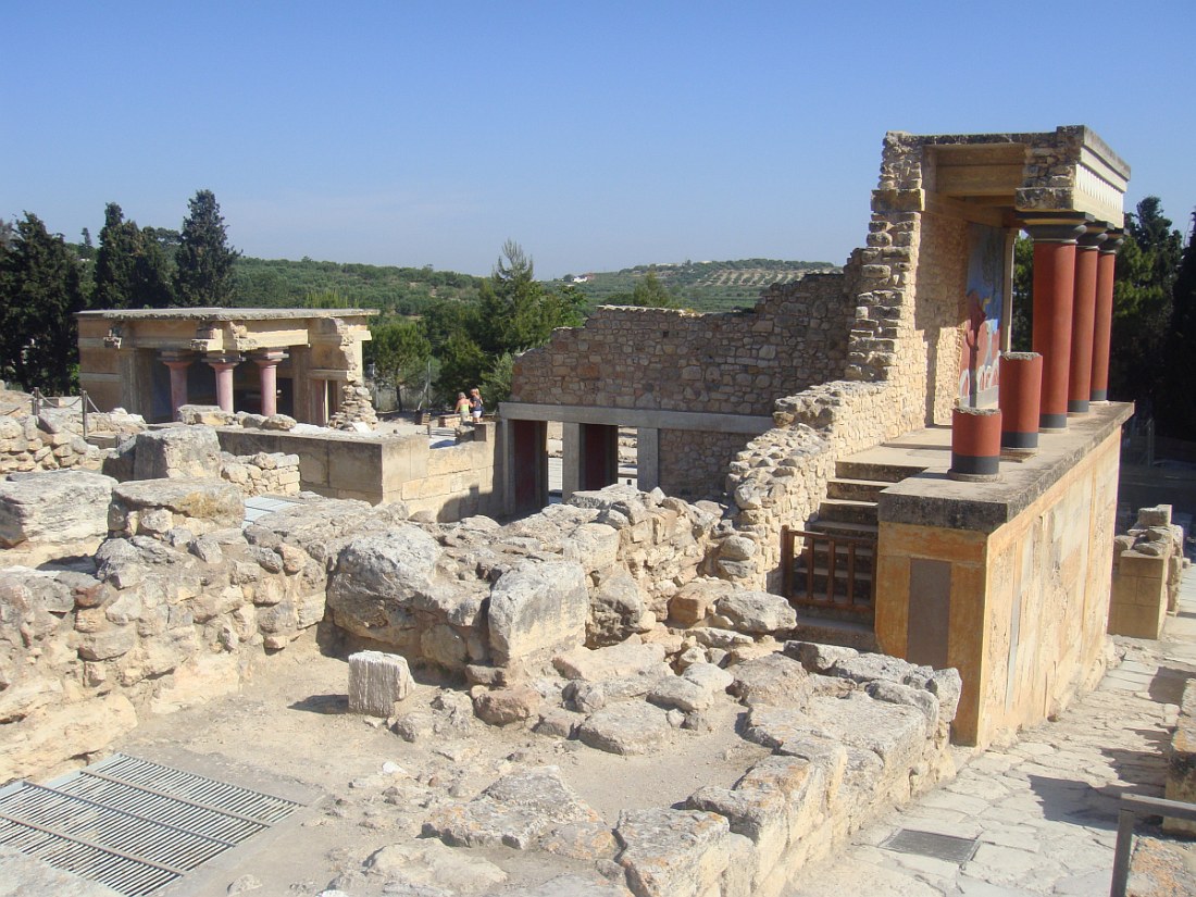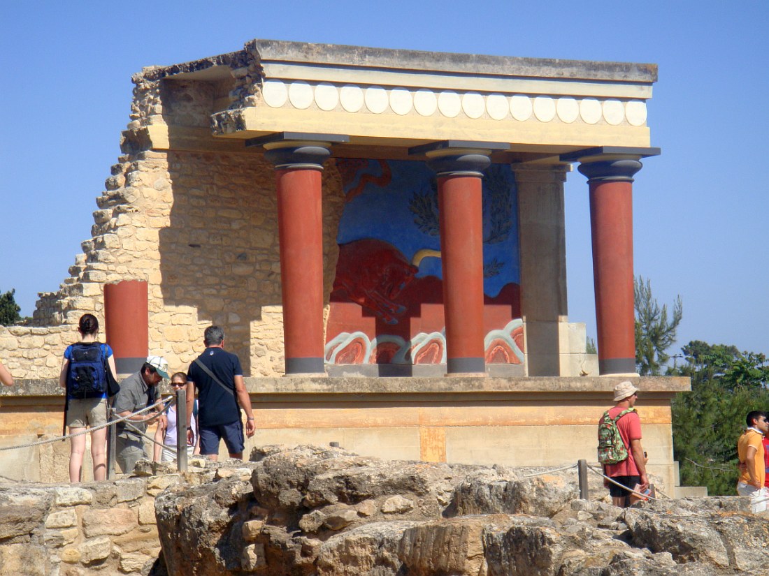 PALAIS DE KNOSSOS - Un site achéologique majeur, de l'âge du bronze en Europe, témoignage de la grandeur et du raffinement des civilisations minoenne et mycenienne. Il aurait été détruit par une éruption volcanique environ 1450 av J.C.
