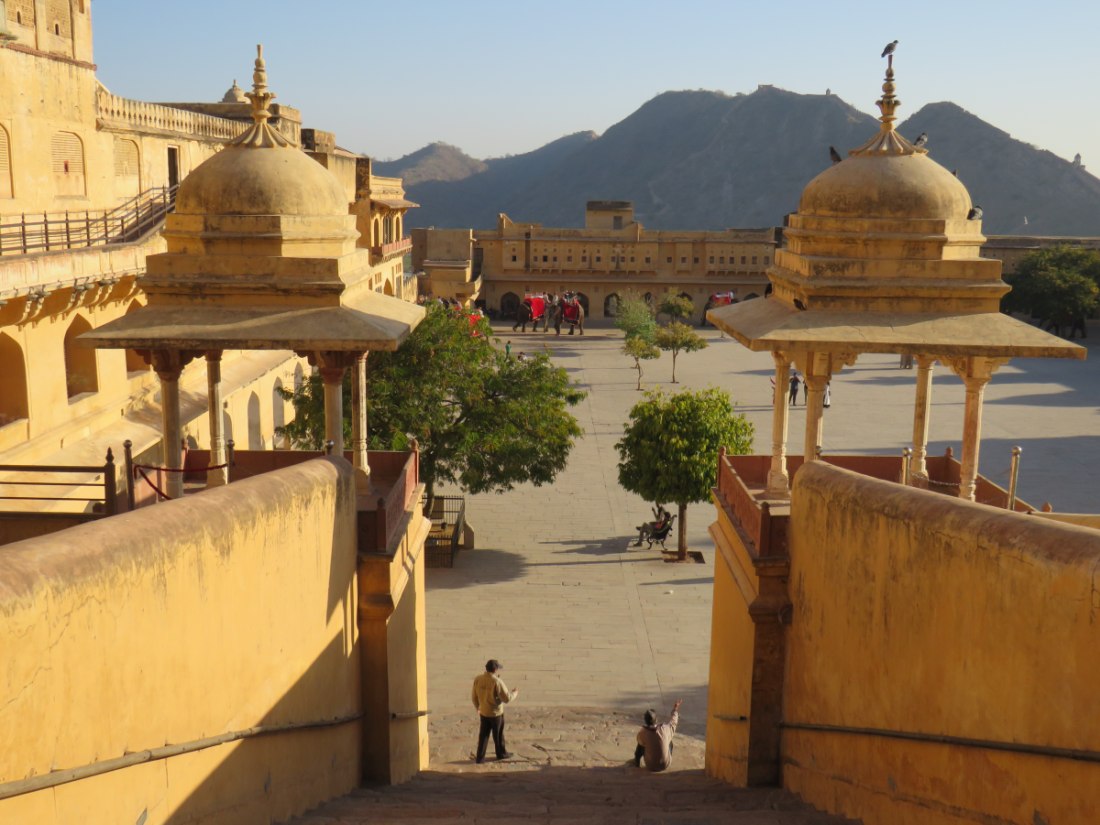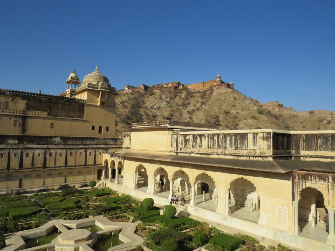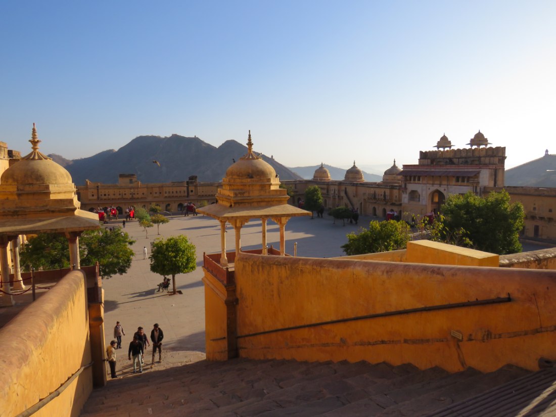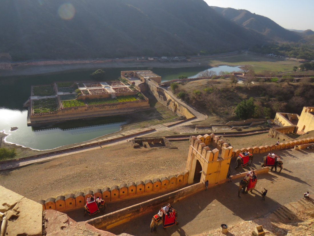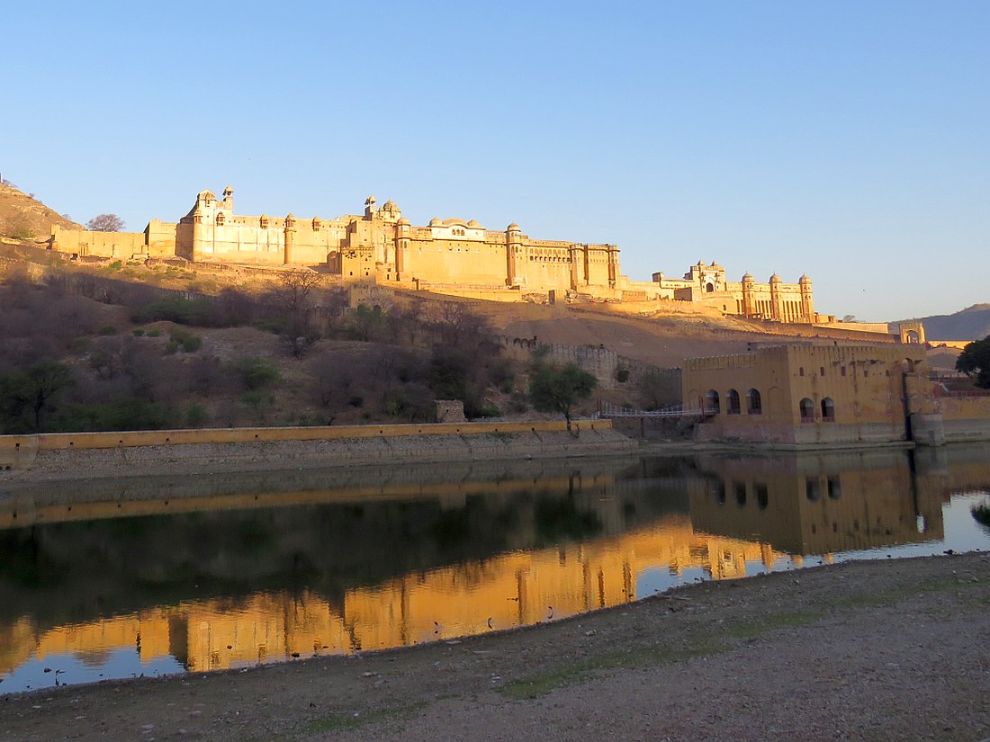 LE FORT D'AMBER - Première capitale de la région à 11km de Jaipur. Le fort est gigantesque, mais le site héberge deux lieux bien distincts: le fort et le palais qui a été la résidence des maharajas Rajput et de leurs familles durant des siècles. Construit aux alentours de 1592, entièrement constitué de grès jaune et rosé, ainsi que de marbre, il domine la plaine et les vallées arides en contrebas et s’inscrit dans un réseau de fortification et murailles parcourant les montagnes avoisinantes.