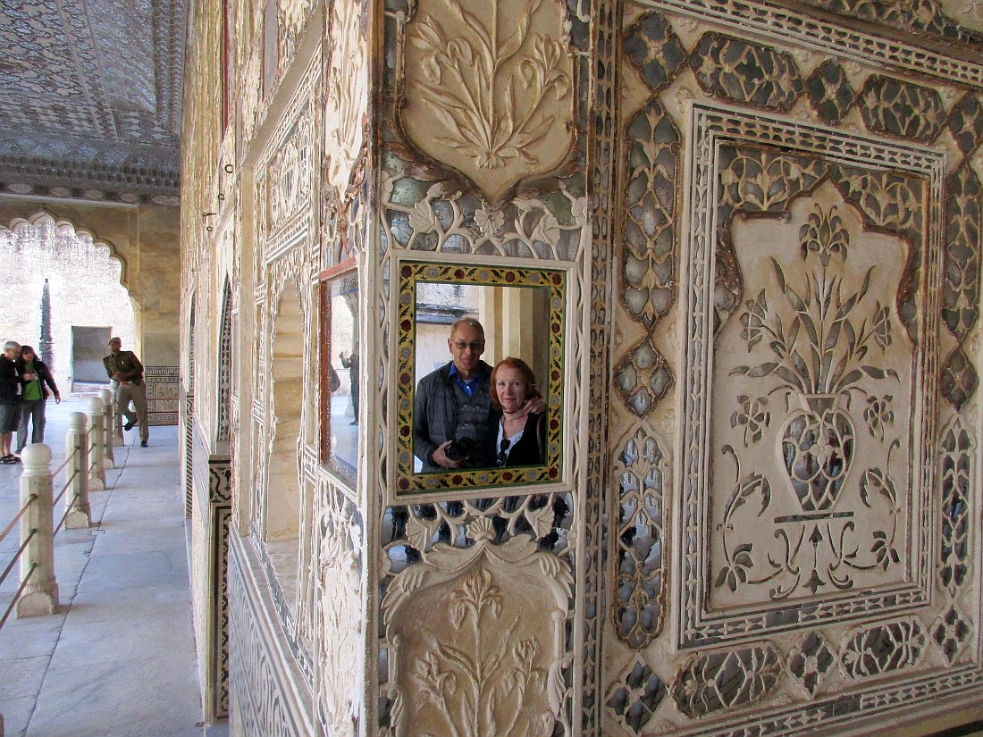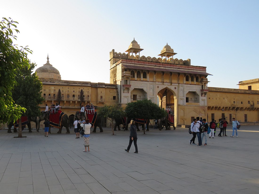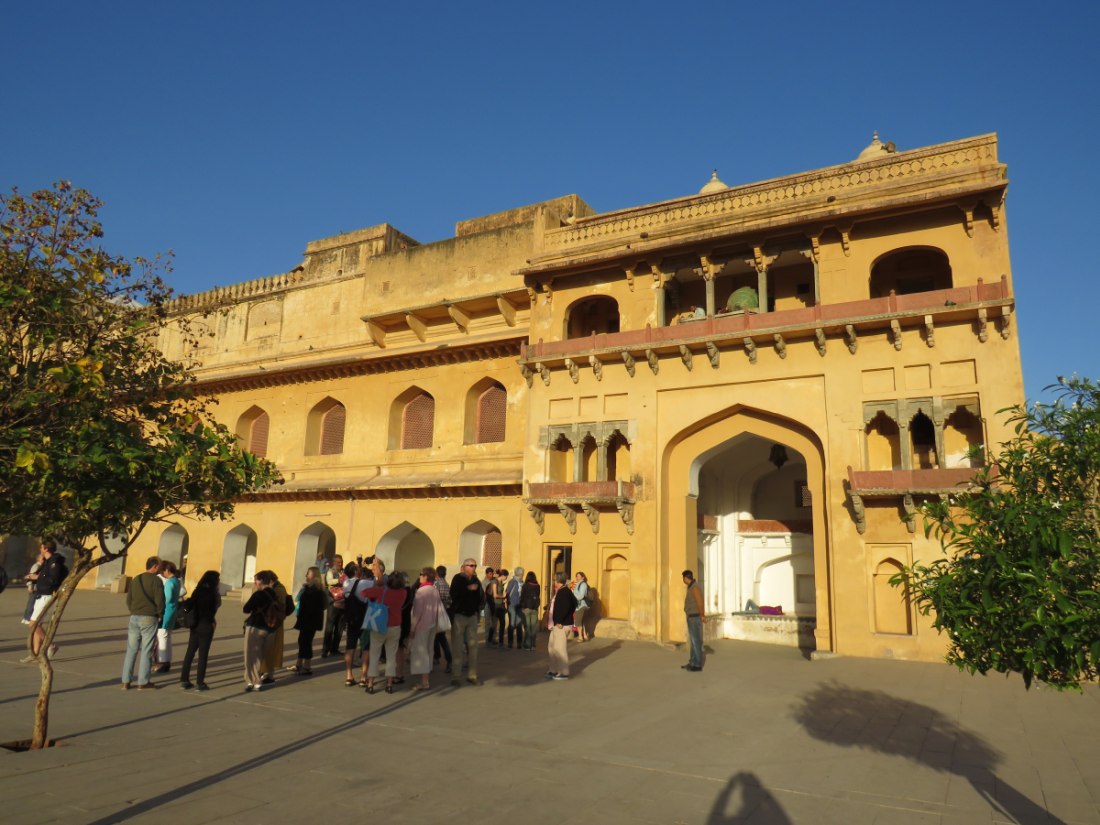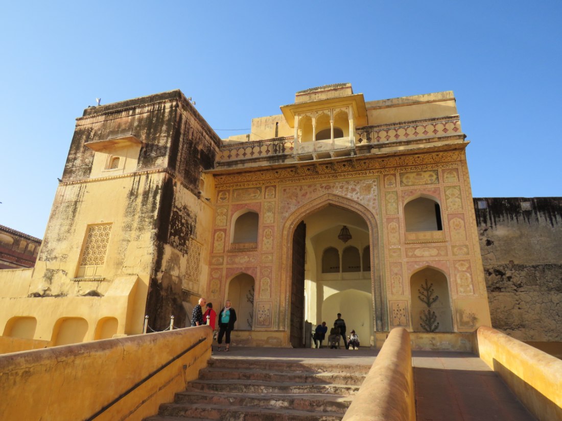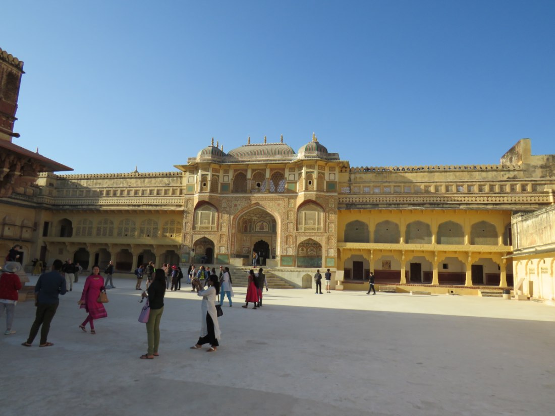 LE FORT D'AMBER - Première capitale de la région à 11km de Jaipur. Le fort est gigantesque, mais le site héberge deux lieux bien distincts: le fort et le palais qui a été la résidence des maharajas Rajput et de leurs familles durant des siècles. Construit aux alentours de 1592, entièrement constitué de grès jaune et rosé, ainsi que de marbre, il domine la plaine et les vallées arides en contrebas et s’inscrit dans un réseau de fortification et murailles parcourant les montagnes avoisinantes.