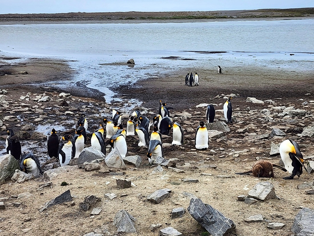 Manchots Royaux, la deuxième plus grande espèce après le Manchot Empereur. L'adulte mesure entre 85 et 95 cm et pèse entre 12 et 14 kg