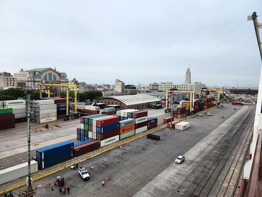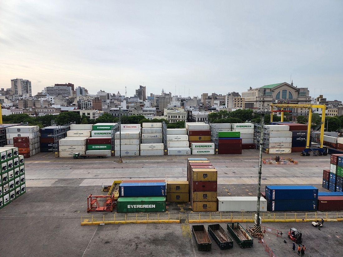 Débarquement au milieu des containers