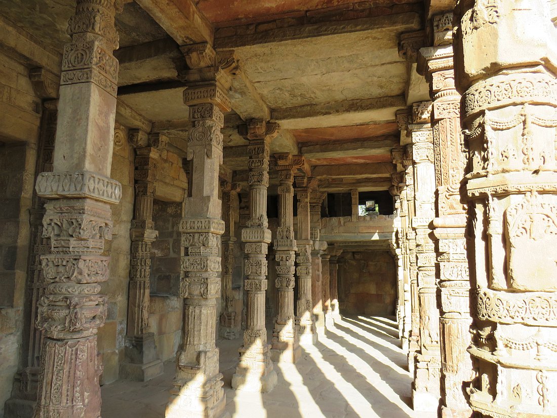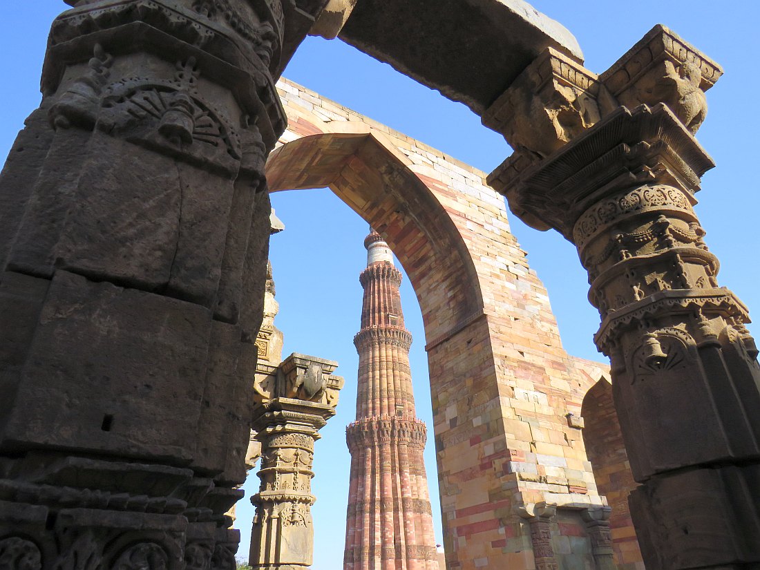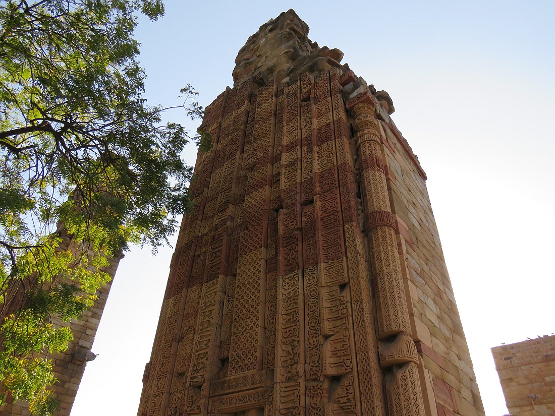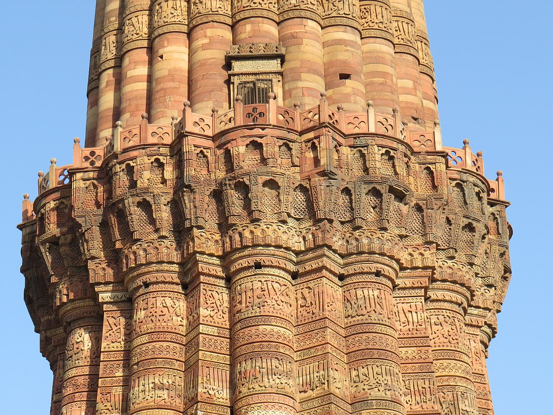 QUTUB MINAR - Cette tour de marbre et de grès rouge est le plus haut minaret d'Inde avec ses 73 mètres, bâti après la défaite du dernier royaume hindou de Delhi en 1193, il marque le début du règne musulman dans le pays. Les fondations furent bâties en 1200 et le dernier étage fut achevé plus de 150 ans plus tard. Au pied de la tour s'élèvent les ruines de la Quwwat-ul-Islam, considérée comme la première mosquée d'Inde. Elle a été construite avec des matériaux provenant de la démolition de 27 temples hindous.