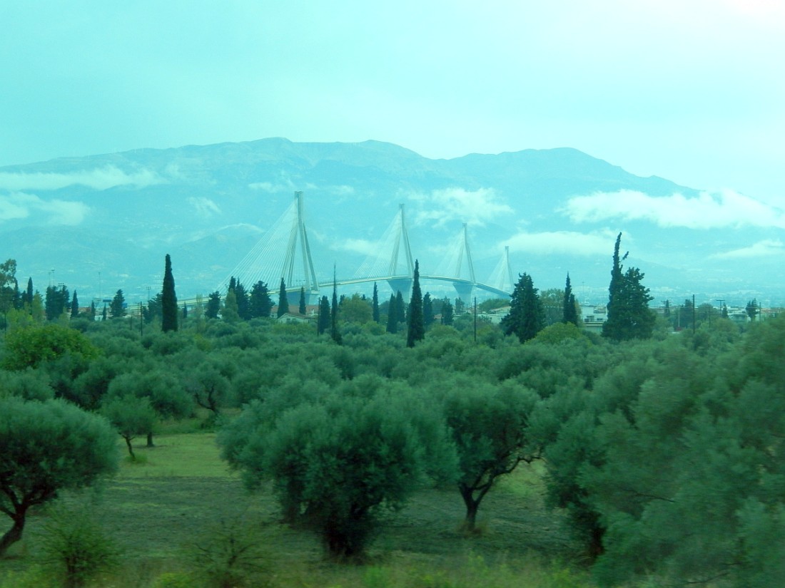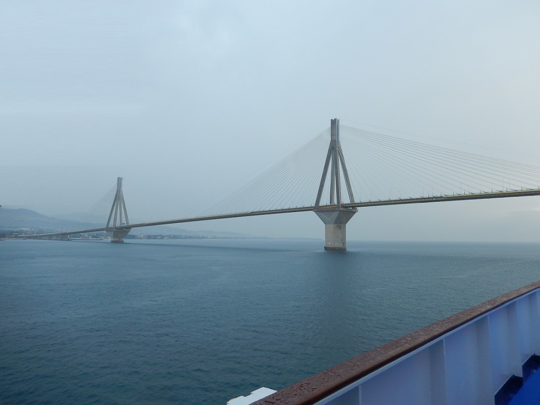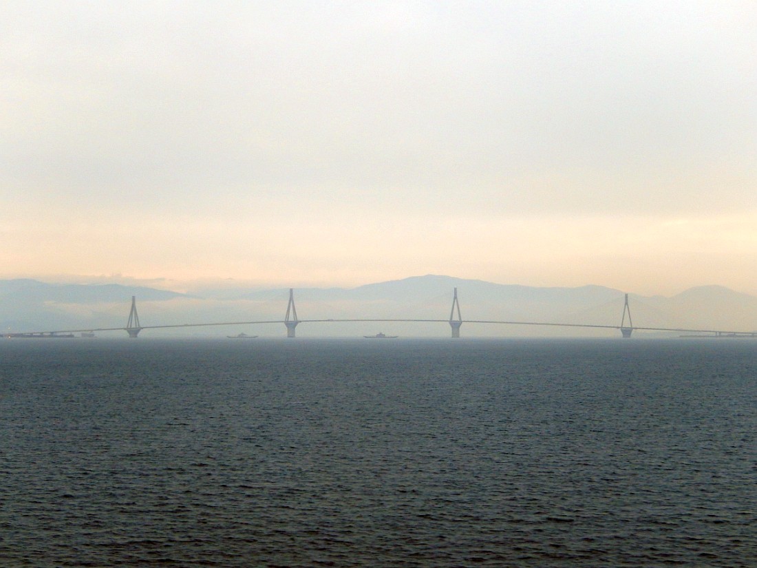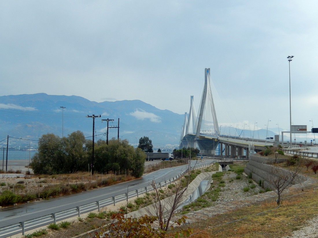 PONT RION-ANTIRION - Pont à haubans d'une longueur totale de 2 883 mètres, reliant le Péloponnèse à la Grèce continentale au dessus du golfe de Corinthe. Prouesse architecturale entre deux plaques tectoniques