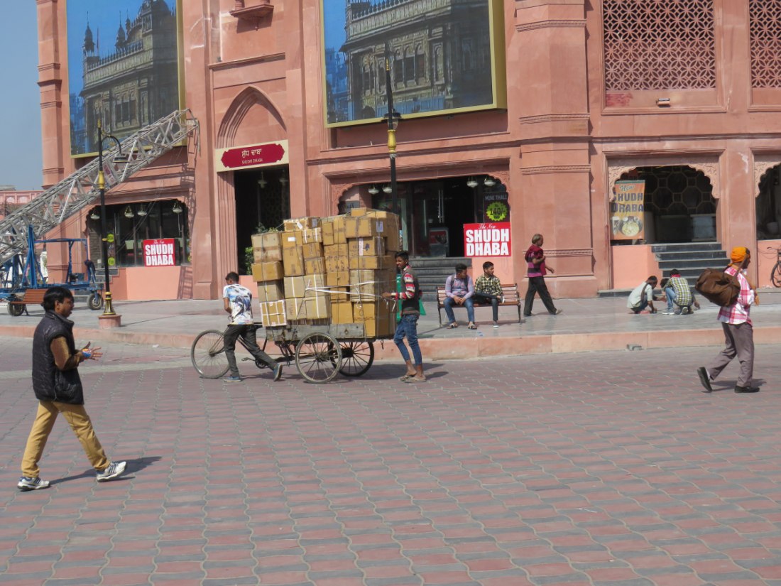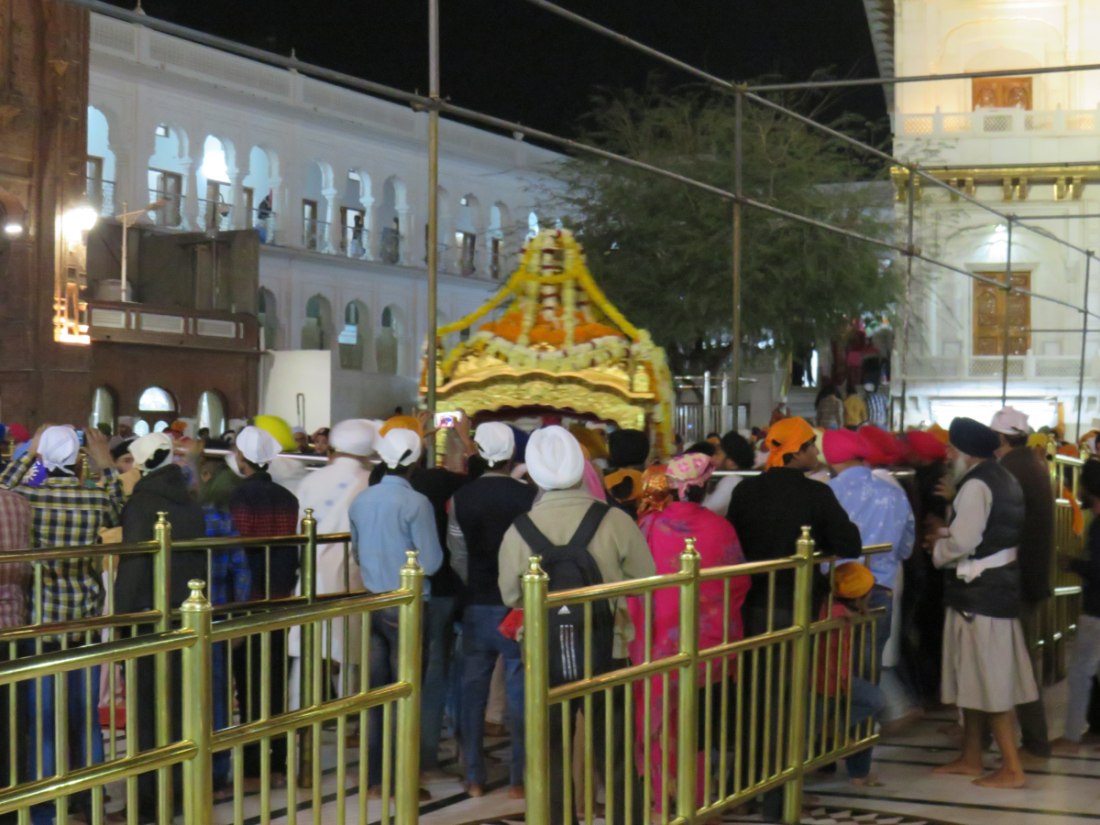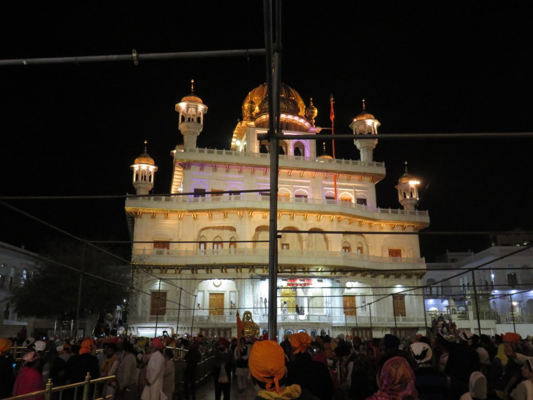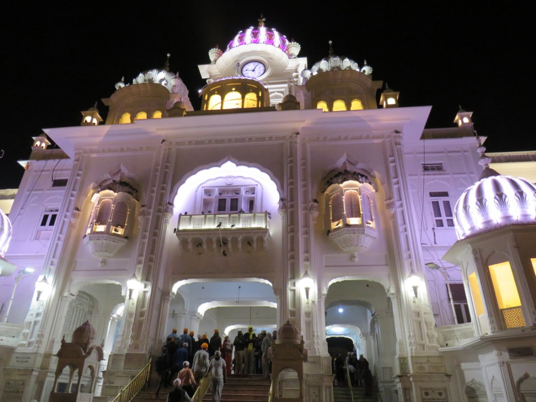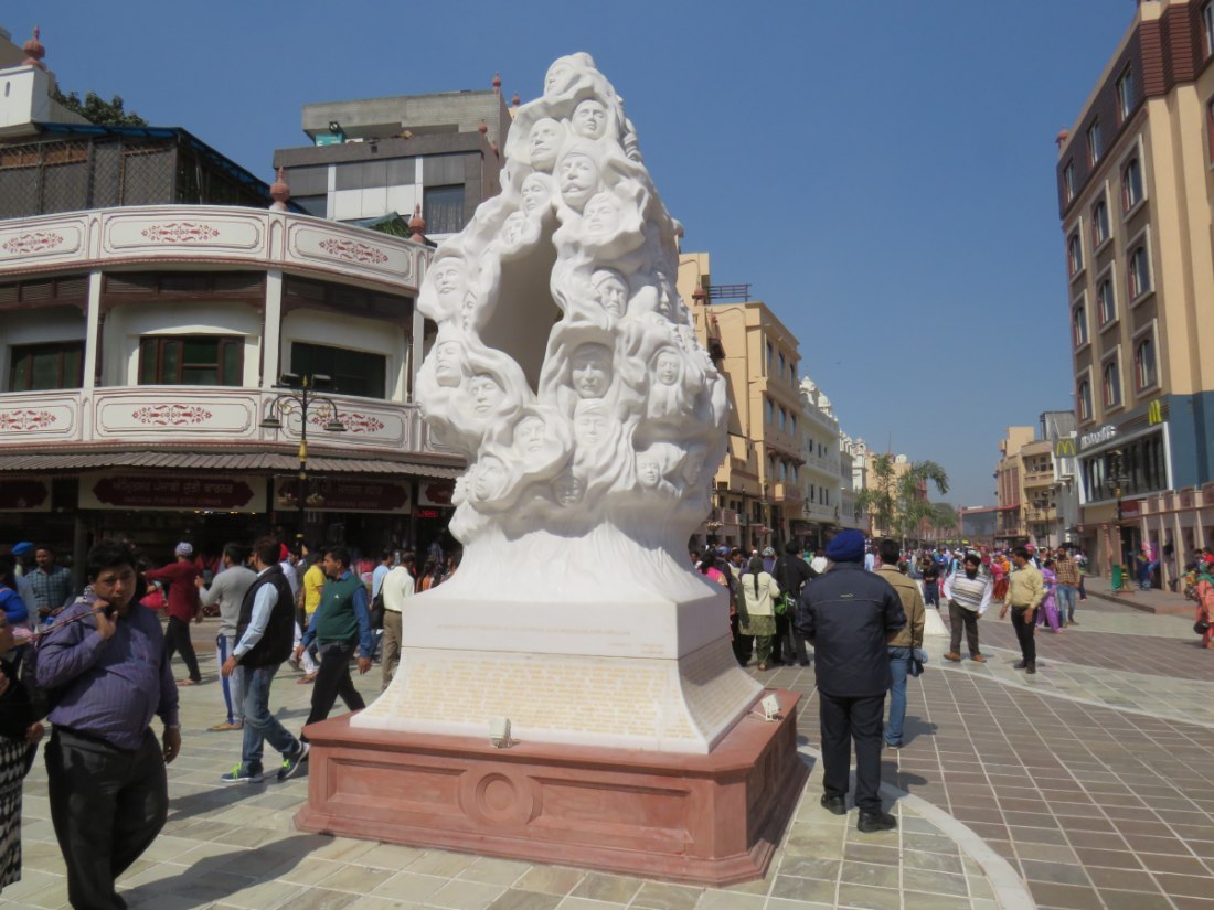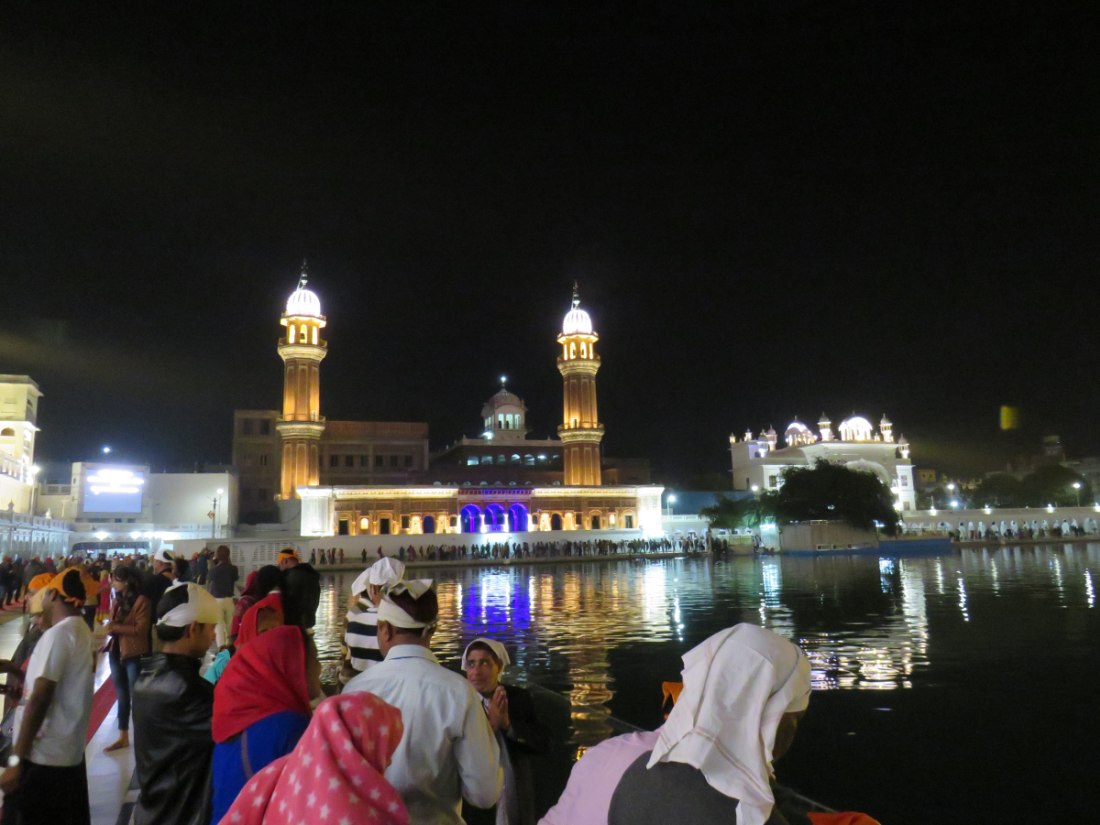 LE TEMPLE D'OR - Situé à un point bas de la ville, comme pour signifier qu'il accueille naturellement tous les disciples. Il trône au centre d'un bassin sacré de forme carrée de 150 mètres de côté, l’Amrit Sarovar. On accède au bassin par quatre entrées qui symbolisent son ouverture à tous les peuples et toutes les croyances. Le temple est entouré d'un vaste complexe comprenant des gurdwârâs (lieux de culte Sikh), des réfectoires où des repas gratuits sont offerts aux pèlerins, un musée, etc.