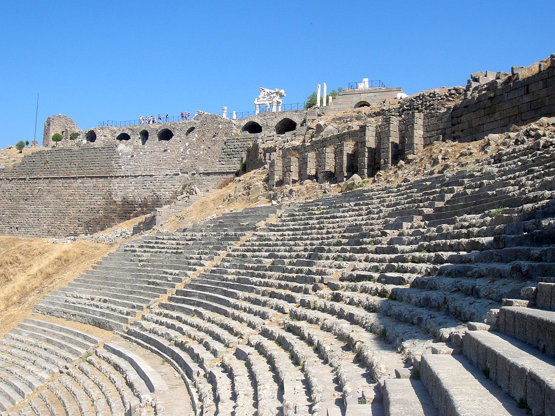 LE THEATRE - Construit sur la pente naturelle de la montagne, composé de 80 gradins étagés sur une hauteur d'environ 50 mètres, il pouvait contenir jusqu'à 30 000 spectateurs