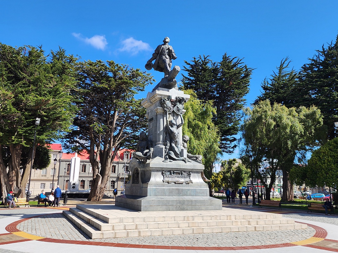 Mémorial surmonté de la statue en bronze de Fernand de Magellan, en hommage à ses découvertes du nouveau monde du sud