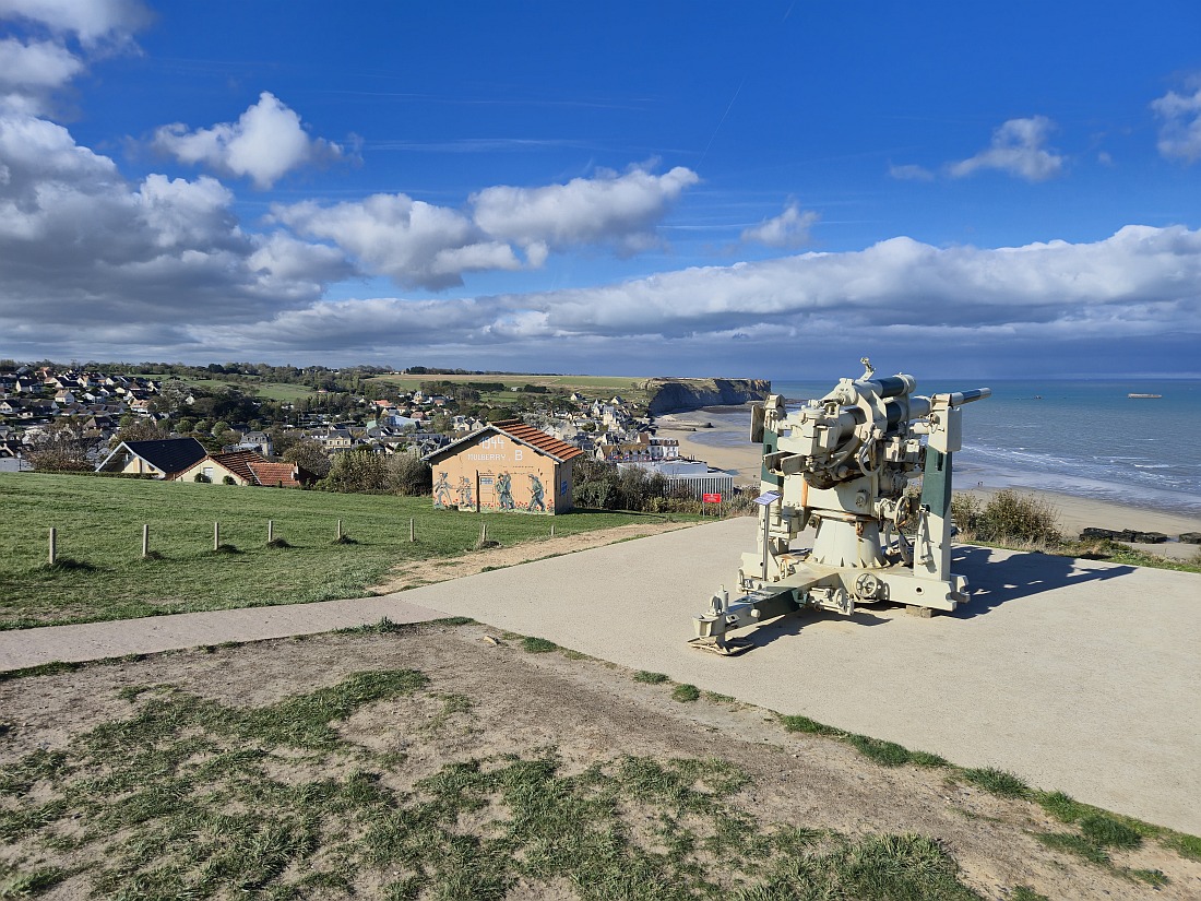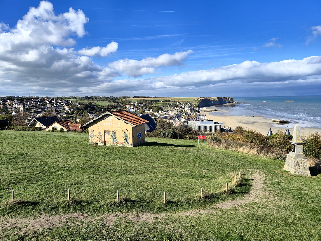 Station balnéaire du Calvados située sur la Manche, imprégnée d'histoire, située au coeur des plages du débarquement, elle aura connu deux périodes: avant et après l'été 1944. A l'origine, village de pêcheurs et d'agriculteurs, le site calé entre ses falaises est depuis les années 1870, grâce au développement du chemin de fer, particulièrement prisé comme lieu de villégiature. Vient se superposer un gigantesque événement avec le port artificiel, oeuvre unique dans l'histoire de l'humanité. D'un bond sa notoriété atteint le niveau mondial, suscitant l'admiration aujourd'hui encore et sans doute pour longtemps, des visiteurs de toute la planète. La baie d'Arromanches agrémentée de ses deux falaises, constitue un lieu d'exception, les vestiges des pontons du débarquement y demeurent visibles, en dépit des assauts de la mer, conférant au site un attrait majeur. le Musée du Débarquement présente un retour sur le défi technique de la construction du port artificiel. Des maquettes, des vidéos et un diorama apportent un relief tout en émotions aux collections présentées.