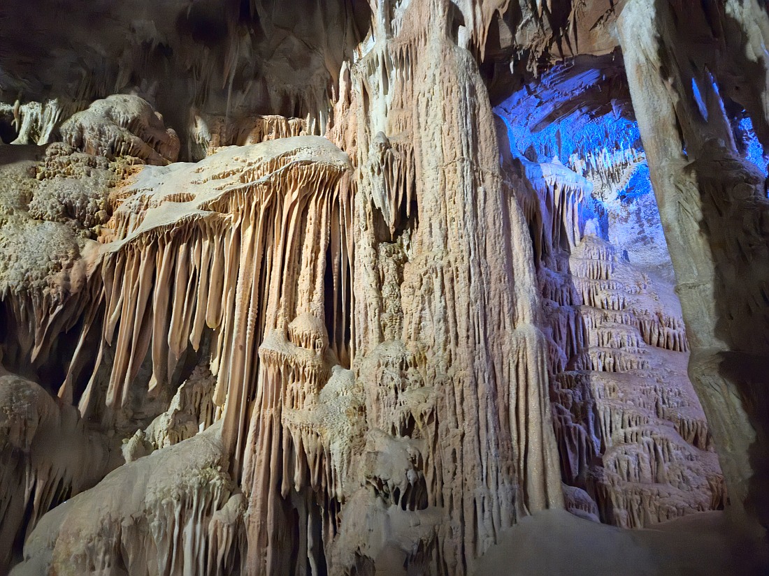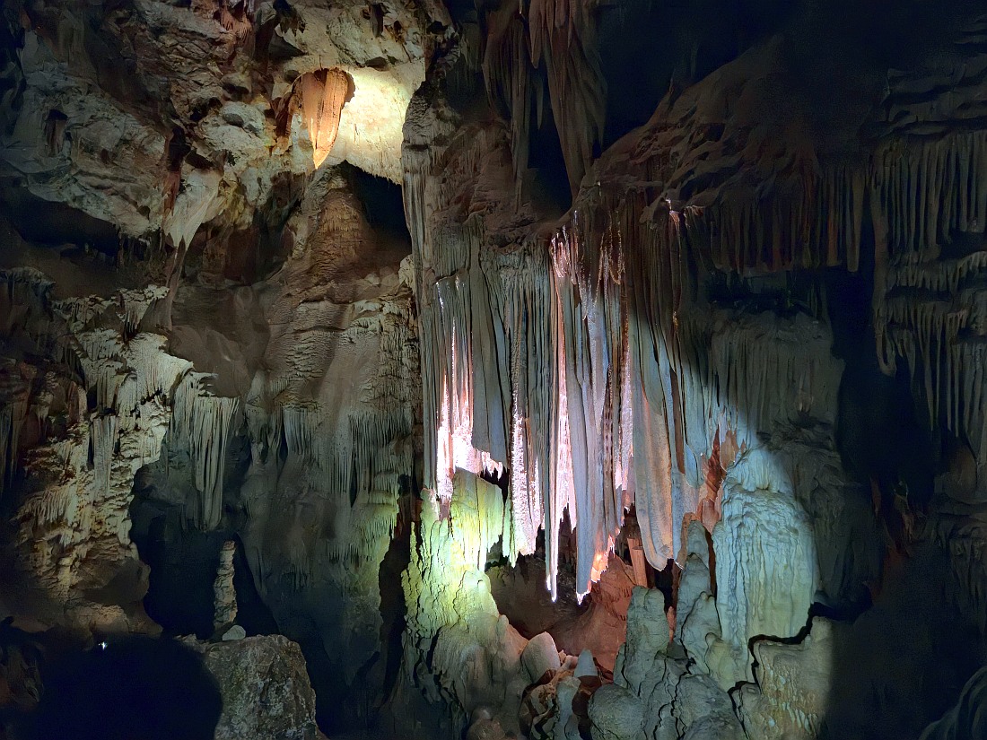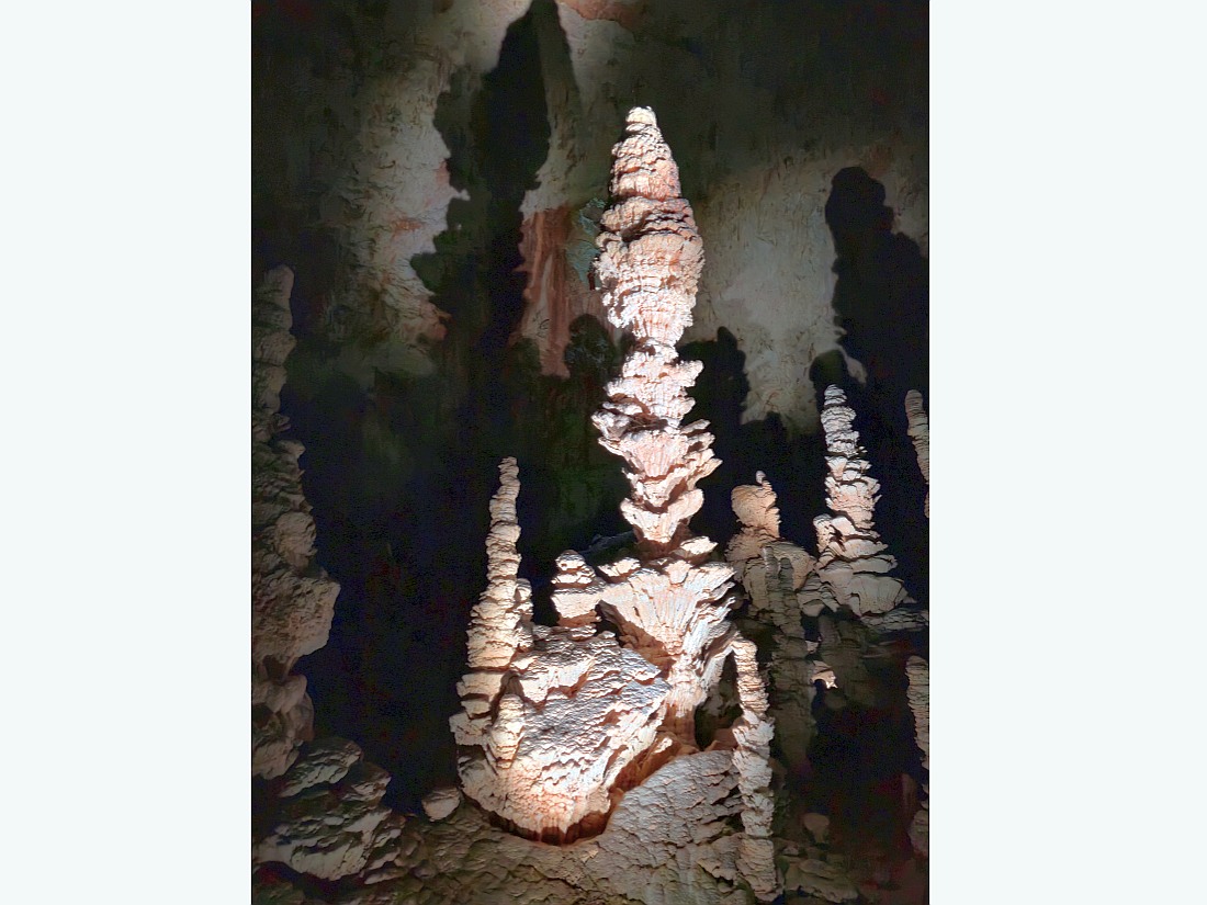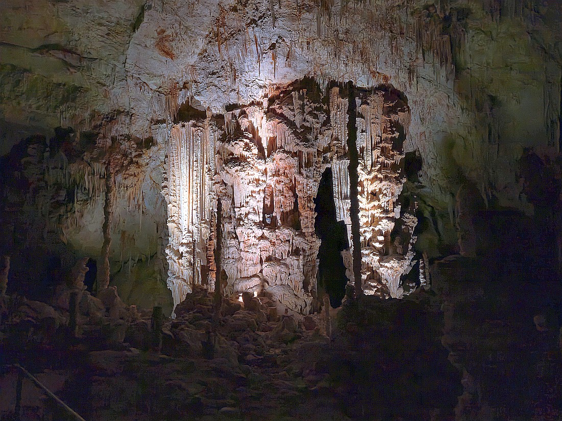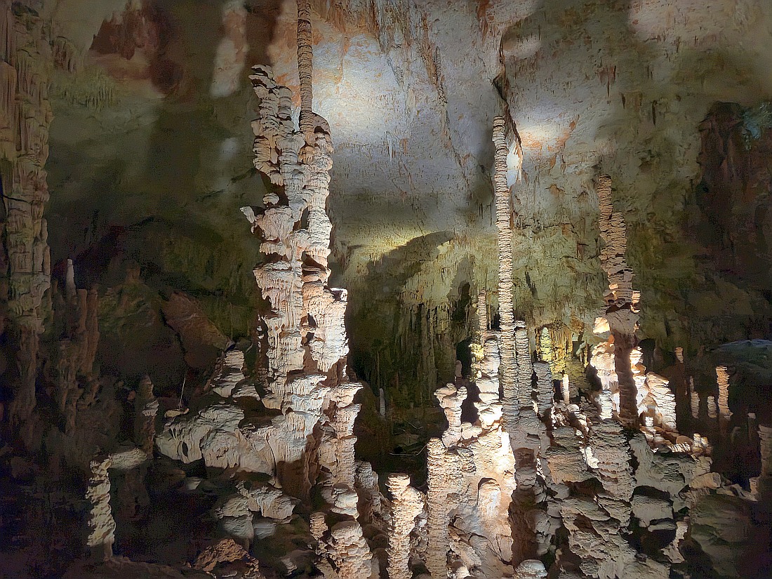 GRAND SITE DE FRANCE sur la commune d'Orgnac-l'Aven, à deux pas des gorges de l’Ardèche et au coeur d’un écrin de verdure, la grotte majestueuse et la Cité de la préhistoire, batiment moderne, permettent d'explorer l’oeuvre de la nature et de voyager jusqu’à nos origines. Aires de jeux et de pique nique, restauration, souvenirs et produits locaux sur place. La découverte de l'aven a été faite par Robert de Joly le 19 août 1935, ouverte au public le 11 juillet 1939. Le 14 avril 1940, la commune change de nom et devient Orgnac-l'Aven. En 1955, le parcours touristique s'agrandit pour atteindre près d'un kilomètre. En 1948, un bâtiment de réception est construit, en 1965, installation de l'ascenseur qui descend depuis le hall d'accueil jusqu'au tunnel horizontal d'accès, ce qui évite la remontée par les 700 marches de l'escalier. En 1965-1966, découverte de près de 4 km de nouveaux réseaux. En 2004, le site est labellisé Grand Site de France. En 2014, la Cité de la Préhistoire, musée "nouvelle version" ouvre. L’entrée naturelle est un trou qui se situe au milieu des chênes verts et qui mène à la première salle de la grotte dont le plafond s’élève à près de 30 mètres, tout en se situant à une cinquantaine de mètres sous la surface.