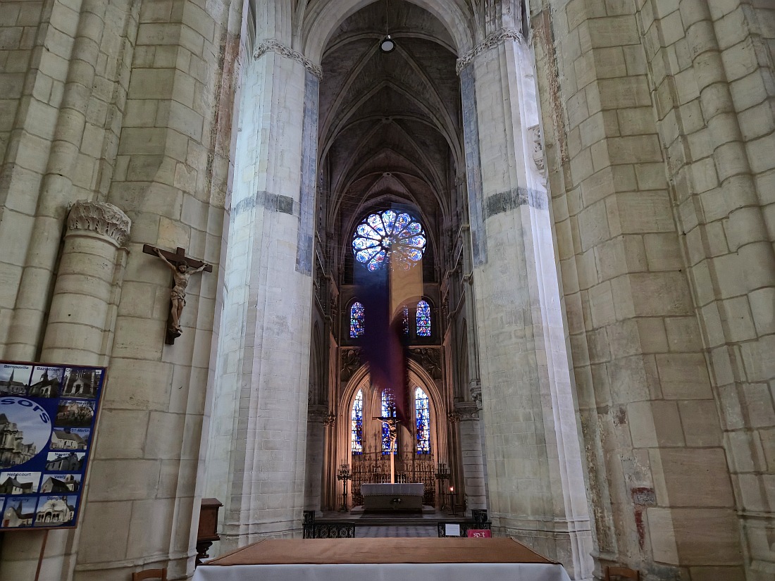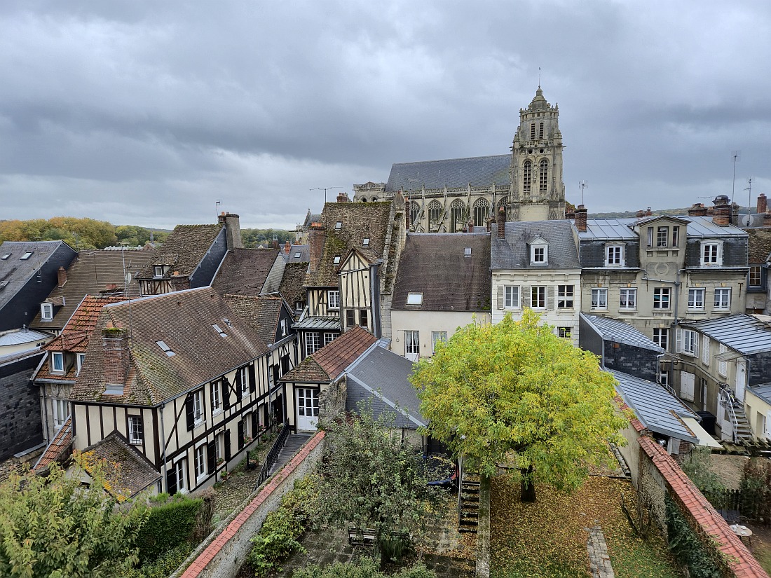 Petite ville de l'Eure, porte d’entrée de la Normandie, capitale historique du Vexin normand, cité médiévale aux rues jalonnées de maisons anciennes à pans de bois, au fil des canaux de l’Epte et au patrimoine prestigieux qui a tenu un rôle défensif majeur dans l’histoire de la Normandie. Surplombant la cité, se tient un impressionnant château fort auréolé de la légende des Templiers, forteresse à vocation défensive, édifiée dès 1097, sous le règne du deuxième fils de Guillaume le Conquérant, destinée à protéger les possessions normandes du roi d’Angleterre face au roi de France, elle s’inscrivait dans une vaste campagne de fortifications de la vallée de l’Epte, limite naturelle entre les deux royaumes. A l’intérieur de l'enceinte de 800 mètres de long, protégée par huit tours, le donjon érigé sur une motte castrale artificielle de 15 mètres de haut et 70 mètres de circonférence. Marquée par l’histoire du trésor des Templiers, le château est confié de 1158 à 1160 à l’ordre du Temple lors d'une trêve entre l'Angleterre et la France puis de 1310 à 1314, le dernier grand maître de l’ordre, Jacques de Molay ainsi que trois autres dignitaires de l’ordre y sont emprisonnés. Autre monument majestueux, l'église Saint Gervais Saint Protais, un des plus beaux édifices religieux de Normandie, ses dimensions s’apparentent à celles de certaines cathédrales. Edifiée à la fin du XIIème siècle, elle fait l’objet de plusieurs remaniements et présente une grande variété de styles, un choeur gothique rayonnant du XIIIème siècle, une nef gothique flamboyante et une façade renaissance édifiée au XVIème siècle.