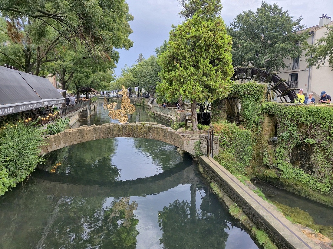 Petite "Venise de Provence" traversée par plusieurs canaux se faufilant entre les rues étroites, alimentés par la Sorgue qui enserre la ville de ses bras. De nombreux ponts et de grandes roues à aubes moussues ajoutent au charme de la cité qui fait partie des musts incontournables de la Provence. Les premiers habitants, au haut Moyen Age, sont des pêcheurs vivant dans des cabanes sur pilotis, installés dans une zone marécageuse afin d’échapper aux envahisseurs. La ville prend sa configuration actuelle entre les XIème et XIIème siècles où elle s'entoure de remparts. Jusqu’en 1791, Avignon et le Comtat sont sous le gouvernement de la papauté et constituent une enclave dans le royaume de France. Pendant la révolution, la cité est pillée et incendiée, la plupart des établissements religieux sont vendus comme biens nationaux. L’énergie hydraulique, déjà à l’origine du développement économique au Moyen Âge, va, grâce à la révolution industrielle du XIXème siècle, faire bondir le nombre d’usines et contribuer à la prospérité de la ville. Depuis plus de 40 ans, la brocante a forgé son identité, lui assurant une notoriété internationale. Elle constitue après Saint Ouen et Londres, la troisième place européenne du commerce des antiquités, organisés sous forme de villages ou en regroupements de boutiques et 2 fois par an, à Pâques et au 15 Août, plusieurs centaines d'antiquaires et brocanteurs s'y donnent rendez vous.