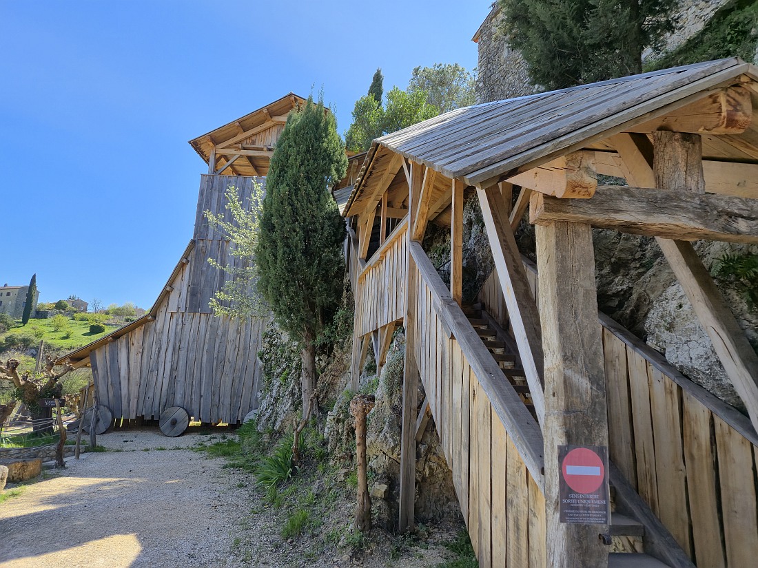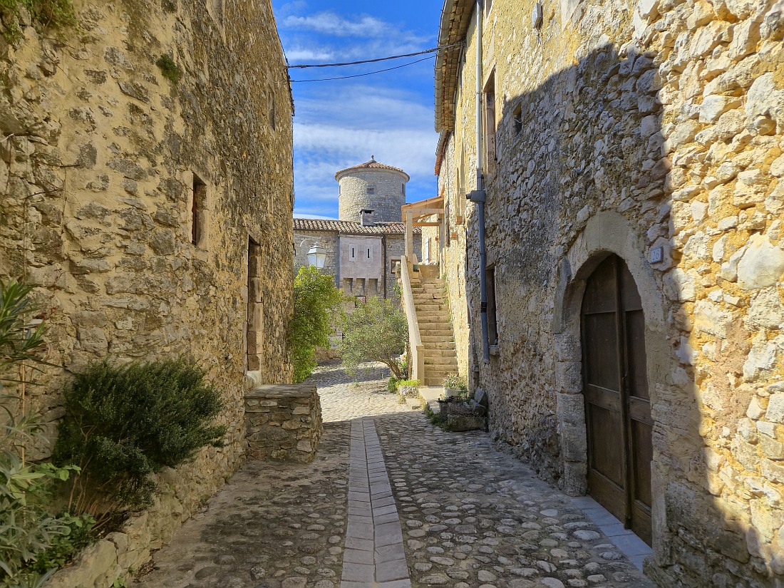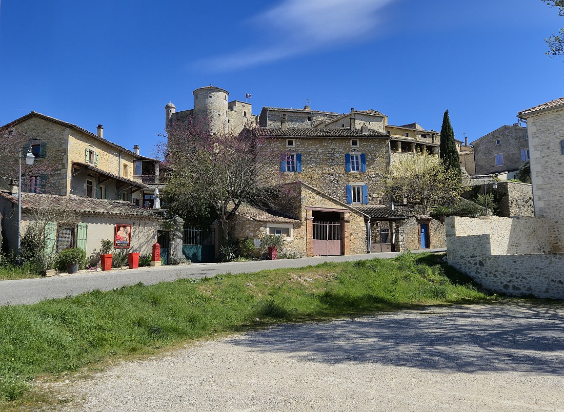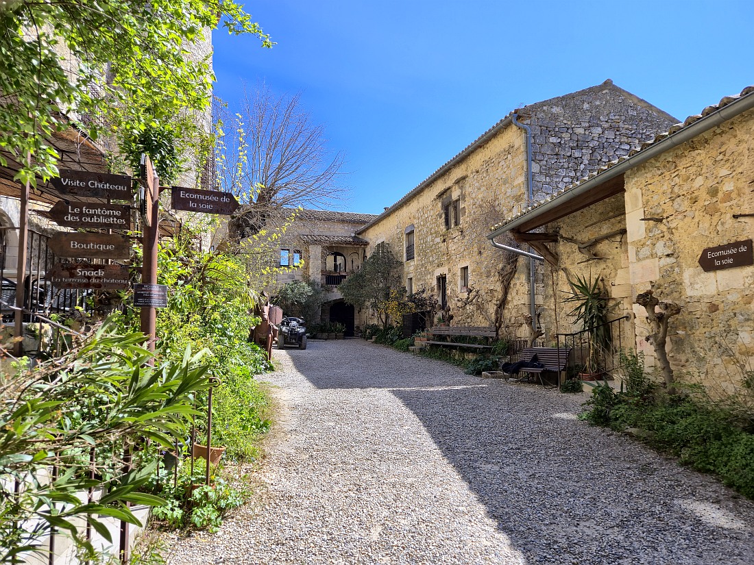 Village médiéval de l'Ardèche accueillant avec ses ruelles pavées, ses passages voutés, ses maisons anciennes et surtout son château situé dans le village, construit au XIVème siècle sur un premier édifice du XIème pour surveiller le passage du pont d'Arc. La commune majoritairement protestante est un point stratégique entre Nîmes et Privas durant les tensions religieuses. Le château devient un haut lieu des guerres de religion jusqu'à la révolte des camisards. Le duc de Rohan est hébergé en 1628 par le comte du Roure, propriétaire huguenot du château. En 1629, Louis XIII fait raser les remparts et les parties défensives du château qui perd ses échauguettes, son donjon et ses mâchicoulis. Après la révocation de l'édit de Nantes, en 1685, le comte de Roure abjure la religion protestante et devient catholique. En 1825, la famille de Beauvoir du Roure vend le château à leur métayer de la famille Pradier qui le transforme en magnanerie et devient l'une des plus grandes de la région. En 1975, les descendants toujours propriétaires ouvrent le château au public. Il abrite le musée de la soie et son élevage de vers, de l'oeuf jusqu'à l'apparition du fil et du filage des cocons, de sa terrasse s'ouvre une très belle vue panoramique sur les toits du village et les Cévennes. Entre 2013 et 2016, le château subit des travaux de rénovation, tours, donjon, échauguettes, toitures et mâchicoulis sont restaurés, un parc médiéval est ajouté.