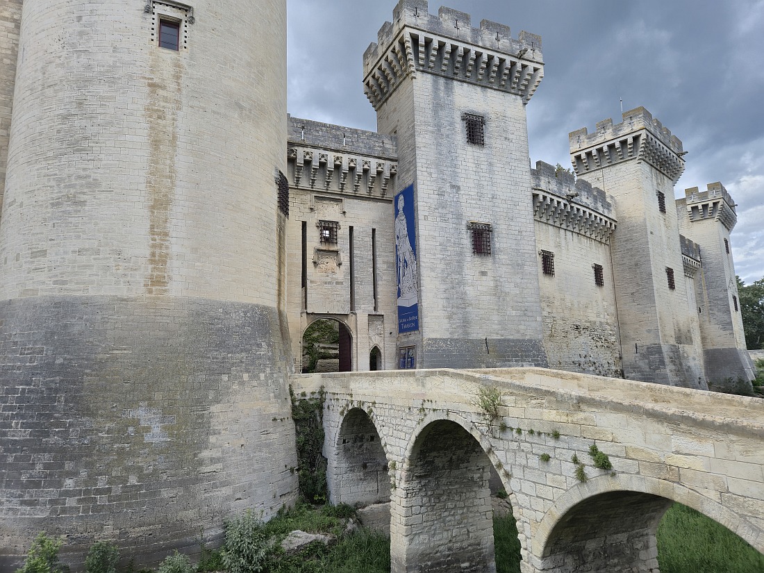 Ville provençale située en bordure du Rhône, marquée par son majestueux château du roi René, exceptionnellement bien conservé, l'un des plus beaux châteaux médiévaux de France et d'Europe. La construction de cette forteresse qui sert à la défense de la Provence face au royaume de France avec le château de Beaucaire, débute en 1400 sous Louis II d'Anjou puis est terminée en 1435 par son fils le roi René. Dotée d'un impressionnant système défensif, elle abrite également l'intérieur élégant d'une résidence princière. La cité possède 26 monuments classés dont le château, la collégiale, l'hôtel de ville,... tout au long de ses rues pittoresques parmi lesquelles, la rue des Halles à arcades du XIVème siècle, la rue Arc de Boqui, entièrement couverte, la rue des Juifs,... La ville est encore associée aujourd'hui aux légende et conte dont elle est le théâtre, celle ci raconte que Marthe de Béthanie venant de Palestine débarque à Tarascon où sévit la "Tarasque", terrible monstre amphibie, elle le dompte par la seule force de sa foi chrétienne. La collégiale Sainte Marthe est construite en son honneur, la crypte abrite ses reliques où sont venus se recuillir de nombreux fidèles et personnages illustres. Il y a aussi le célèbre conte de "Tartarin de Tarascon", légendaire personnage chasseur de lions, né sous la plume d'Alphonse Daudet en 1872. A quelques kilomètres sur la route d'Avignon se trouve l'abbaye Saint Michel de Frigolet, isolée dans un vallon sauvage. Abbaye de chanoines Prémontrés, fondée au XIIème siècle qui a connu beaucoup de vissicitudes au cours des 9 siècles de son histoire.