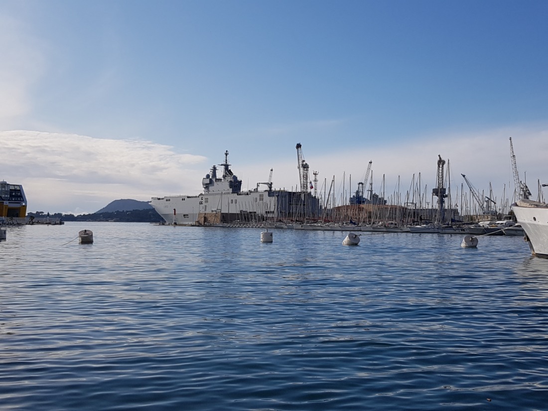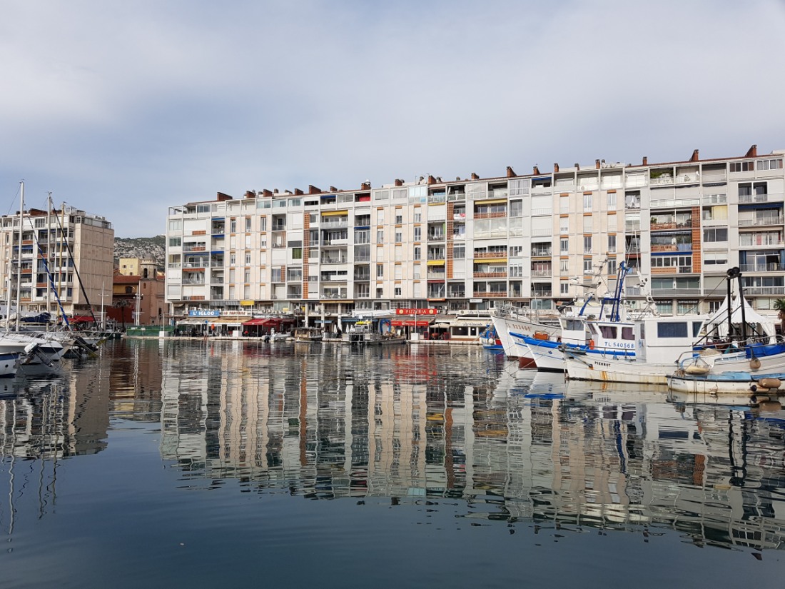 Préfecture du Var et principale base navale française, située entre mer et montagnes. Un coquillage, le "murex", gros escargot de mer est à l'origine de la ville, récolté uniquement à Toulon, les Romains s'en servaient une fois écrasé pour teindre les toges en pourpre. Au Moyen Age, la petite ville est bien à l'abri derrière ses remparts, elle vit de l'artisanat et du commerce de son port. Après le rattachement de la Provence à la France, Toulon devient un lieu de construction navale sous Charles VIII et sa rade est utilisée pour abriter des flottes militaires. Vauban fortifie la ville qui reçoit l'escadre méditerranéenne de Louis XIV. L'histoire va prendre un tournant important avec le développement du port et la création de l'arsenal au XVIème siècle. Les navires de guerre y sont désormais amarrés. Avec le besoin de main-d'oeuvre, de plus en plus de personnes s'installent. Les remparts sont déplacés vers l'extérieur, ils le seront une seconde fois au XIXème siècle, où, par la même occasion, la ville sera modernisée, cette période correspond au règne de Napoléon III. La seconde guerre mondiale détruit la moitié de la ville dont les maisons du port. L’architecte Jean de Mailly qui signe la conception de la "Frontale" (les immeubles reconstruits du Port) reçoit le grand prix d’honneur à la Triennale de Milan.